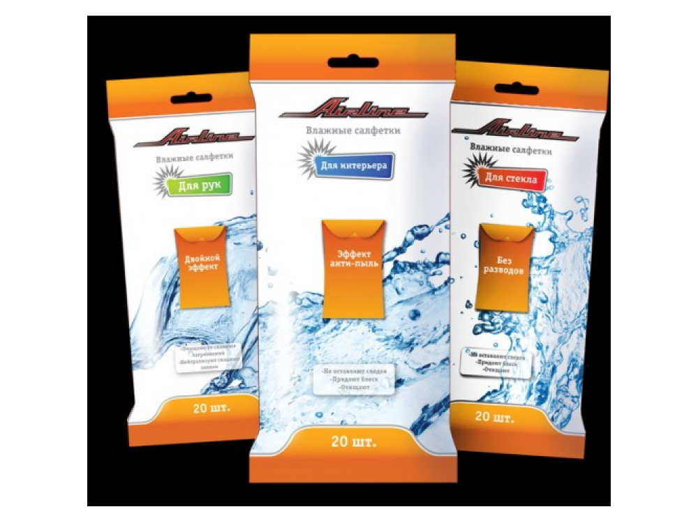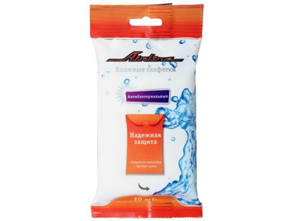 Влажные антибактериальные салфетки позволят удалить загрязнения с любых поверхностей. Салфетки не вызывают аллергических реакций, т.к. не имеют ярко выраженного аромата. В одной упаковке салфеток от AIRLINE содержится 10 изделий, пропитанных особой антибактериальной жидкостью.