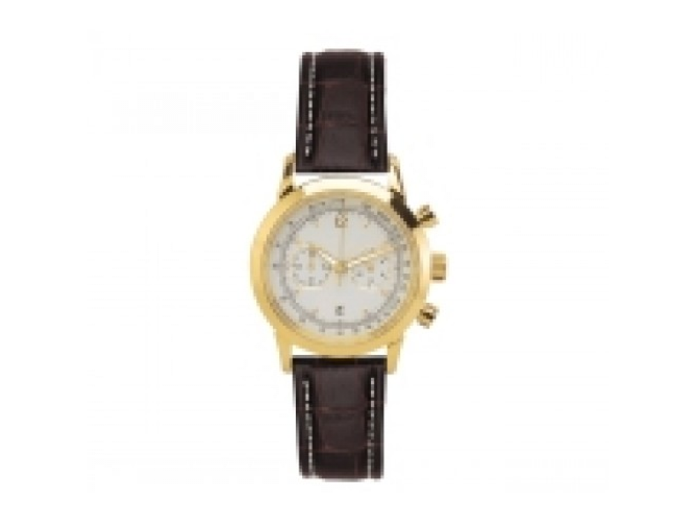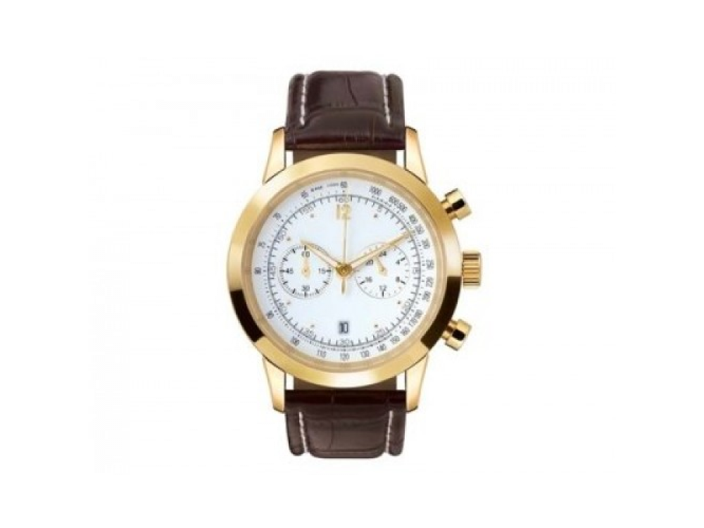 ХРОНОГРАФ RETROGRAPH, CLASSIC Корпус часов из позолоченной нержавеющей стали. Кварцевый механизм, калибр OS 21. Минеральное стекло. Циферблат белого цвета. Индикатор даты, секундная стрелка, 24-часовая индикация. Водонепроницаемые до 5 ATM. Кожаный ремешок коричневого цвета. Гравировка исторической звезды «Мерседес-Бенц» на заводной головке. Диаметр корпуса: 42 мм. Артикул: B6 604 3425