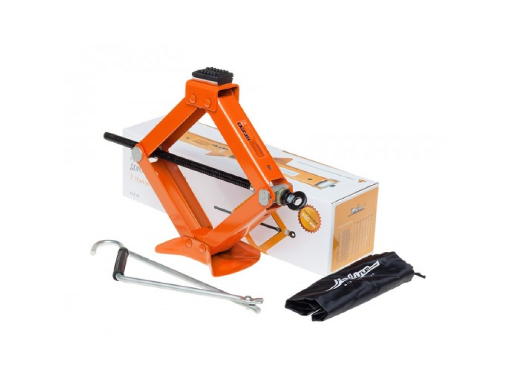 Домкрат в форме ромба обладает массой преимуществ. К ним можно отнести устойчивую конструкцию изделия, которая практически не колеблется во время проведения работ, а также наличие вращающейся верхушки из прочной резины. Максимум грузоподъемности равен двум тоннам. Также домкрат обладает увеличенной высотой подъема, которая способна достигать 400 мм. Гарантия — 1 год.