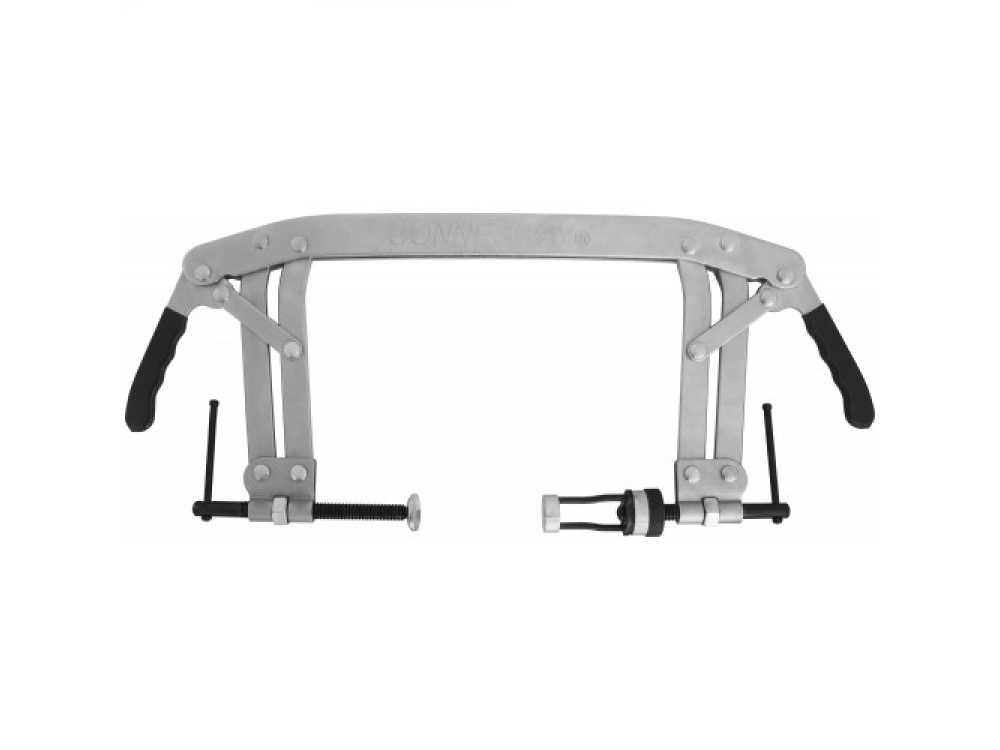 Рассухариватель клапанов, созданный специально для двигателей с глубоко установленными в головке блока клапанами ГРМ. Применяется для верхневальных (ОНС), верхнеклапанных (ОНV) и V-образных (СVH) систем газораспределения. Глубина скобы 165 мм, диапазон захвата от 50 мм до 175 мм. Изделие укомплектовано двусторонним сменным толкателем с насадками для малых тарелок клапанов - 16 мм и больших - 25 мм. Двойное действие рычагов толкателя и зажима облегчает использование инструмента.