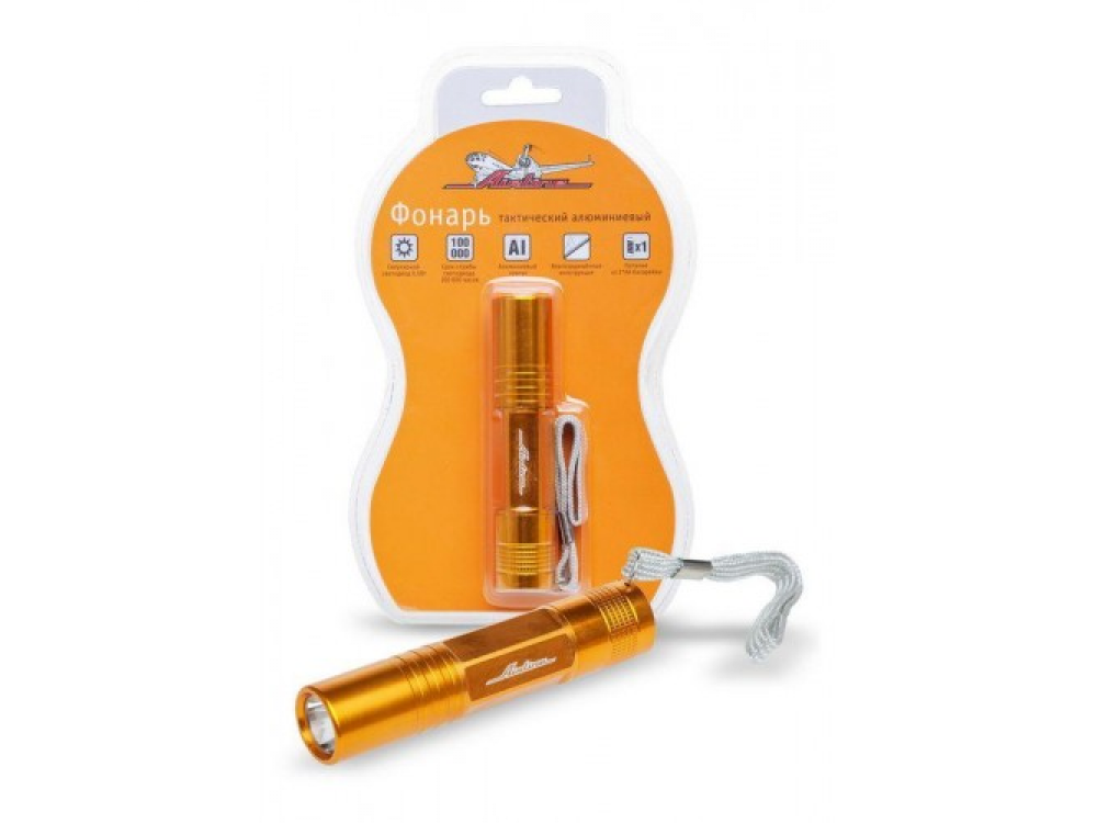 Компактный алюминиевый фонарик, благодаря своим маленьким размерам, широко используется на бытовом уровне. Фонарик имеет алюминиевый корпус ярко-оранжевого цвета и удобный шнурок для фиксации. Фонарь способен функционировать на протяжении 24 часов. Изделие получает питание от сети, 1 батарейка типа АА. AFL-1-07