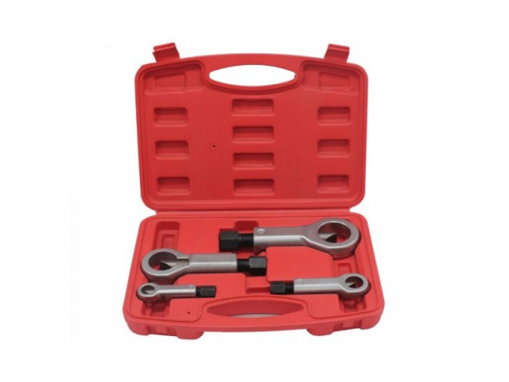 Набор гайкоколов, 4 штуки представляет собой необходимое для удаления поврежденных гаек. Инструмент применяется для безопасной работы с крепежом без повреждения болтов.