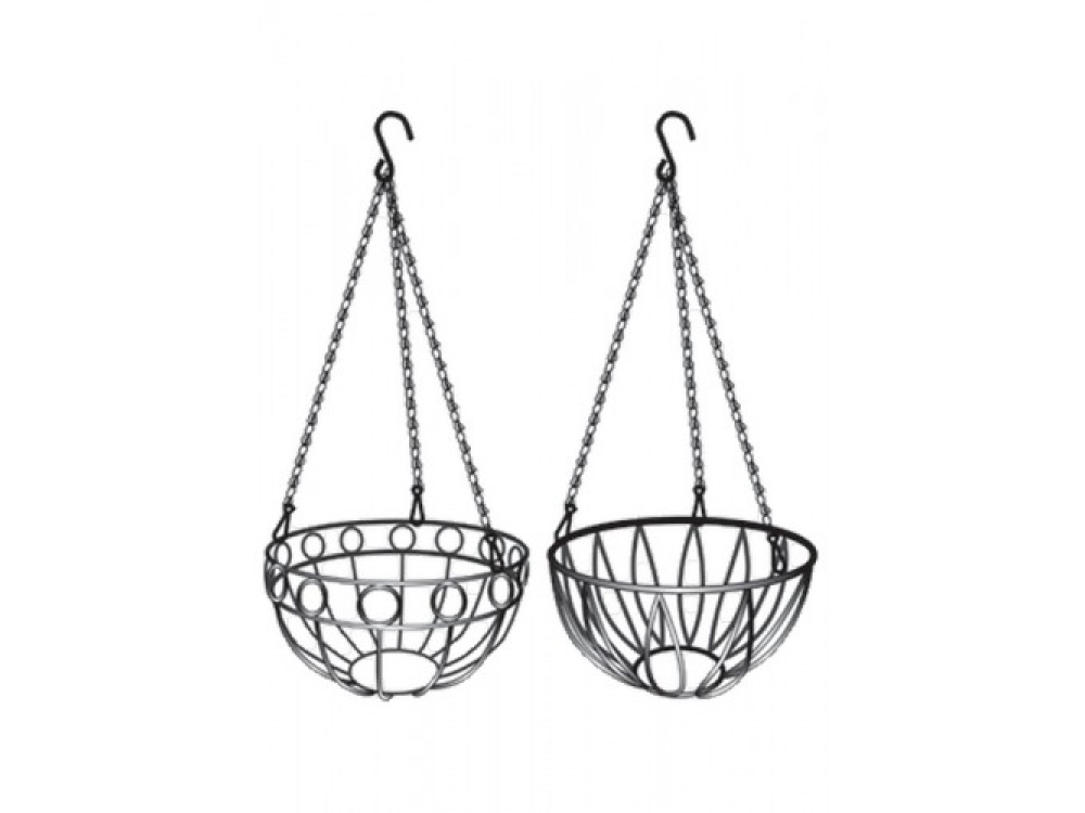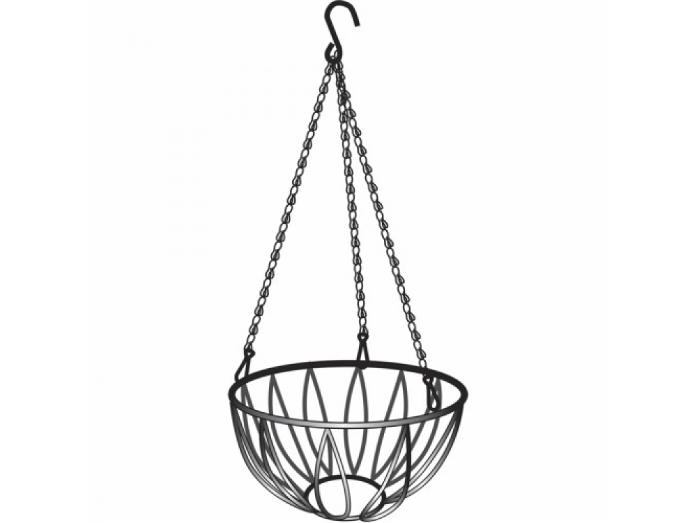 Подвешивается на трех цепочках, объединенных удобным крюком. Представляет собой круглую корзину внутренним диаметром 254 или 260 мм и глубиной 150 мм. Высота с цепью и крюком 535 мм. Материал: сталь, окрашенная для защиты от коррозии.