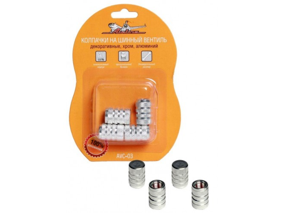 Колпачки предназначены для защиты шинного вентиля от попадания загрязнений и жидкости. Колпачки помогают создать герметичность внутри шины автомобиля, создавая барьер для травления воздуха. Данная модель колпачков изготовлена из алюминия и резины. Поверхность колпачков украшена декоративной резьбой.
