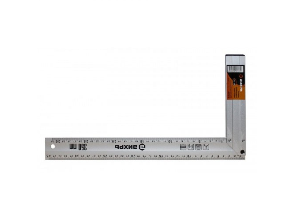 Алюминиевый литой угольник 350 мм Вихрь 73/11/3/4 можно использовать для нанесения разметки и определения углов 45/90 градусов.