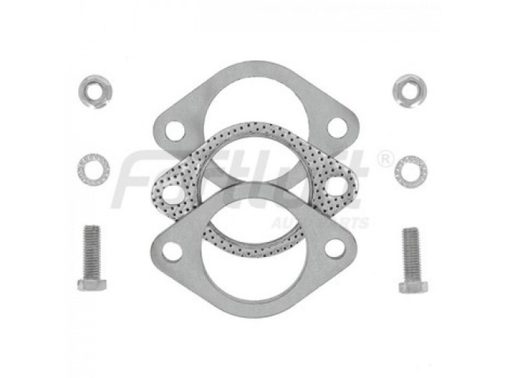 Фланцевое соединение является одним из самых основных соединений компонентов выхлопной системы. Один фланец приваривается к одной части выхлопной трубы, другой к ответной и соединяется болтами через прокладку. Толщина фланца 8мм, изготовлен фланец из нержавеющей стали, что обеспечивает долгосрочный срок эксплуатации.