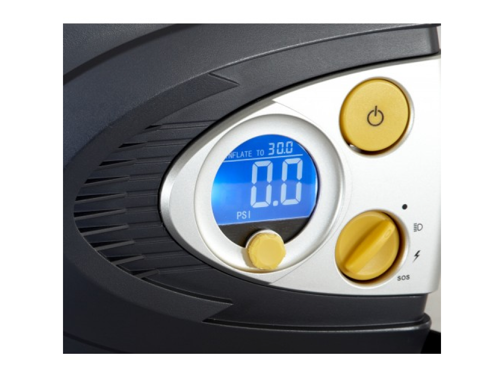 Воздушный компрессор Ring RAC635 со светодиодной подсветкой - небольшой мощный компрессор, облегчающий уход за шинами. Настройка проста, просто поверните поворотную ручку до необходимого давления, затем нажмите старт. RAC635 будет накачиваться до тех пор, пока не будет достигнуто выбранное давление, а затем автоматически остановится. Цифровой экран с подсветкой четко показывает процесс работы, давление отображается в кПа, фунтах на квадратный дюйм или бар. Встроенный светодиодный свет облегчает работу ночью и делает его более безопасным, и его можно установить в режим SOS с красным сигналом, чтобы привлечь внимание или предупредить других автомобилистов.