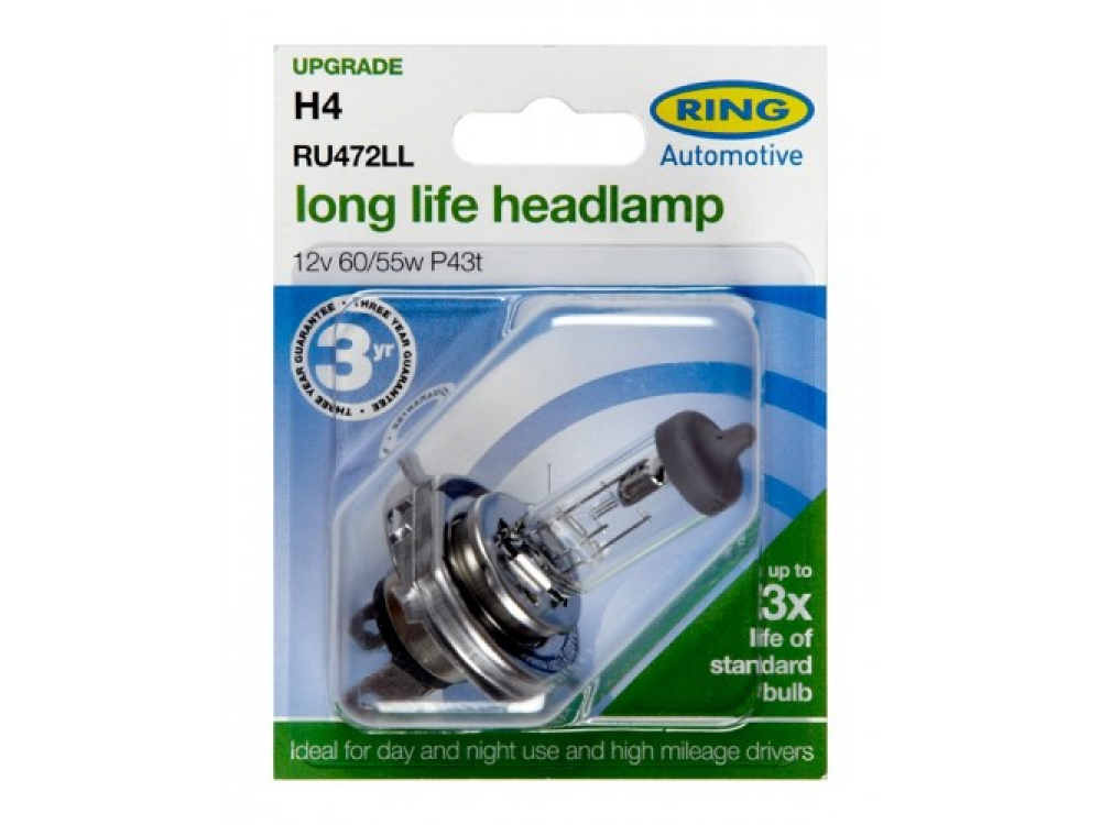 Автолампа с гарантией 2 года в пластиковой упаковке (по 1 шт): 12 вольт, мощность 60/55W, цоколь H4 (P43t)