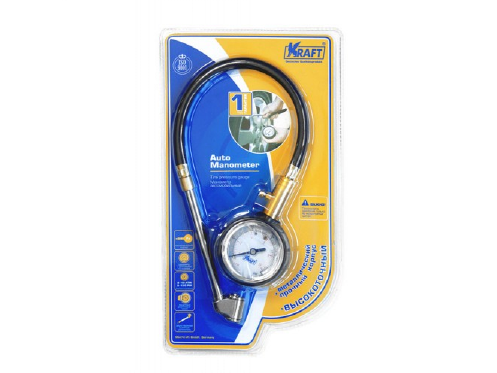 Металический корпус. Резиновое покрытие.0-150PSI(10ATM). Аналоговая шкала. Кнопка сброса показаний.