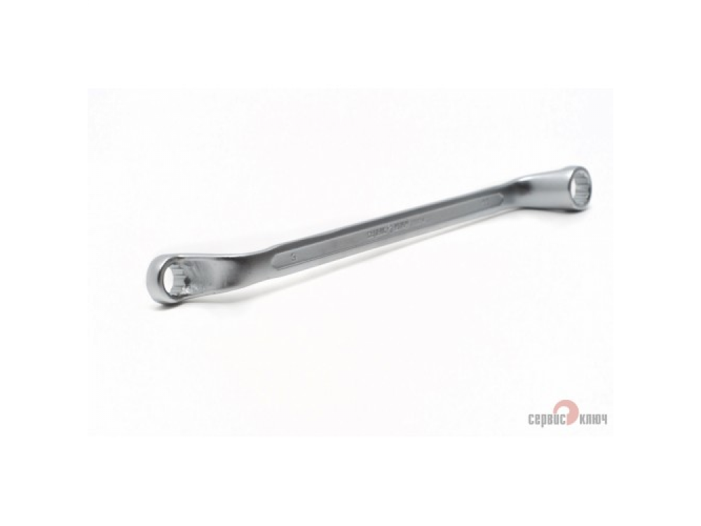 Двусторонний накидной ключ со смещением. Имеет на обоих концах 12-гранные накидные профили. Накидной профиль со смещением предоставляет более широкие возможности при работе в ограниченном пространстве. Изготовлен из высококачественной хромованадиевой (Crv) стали методом холодного штампа, тверность 40-45 HRC.