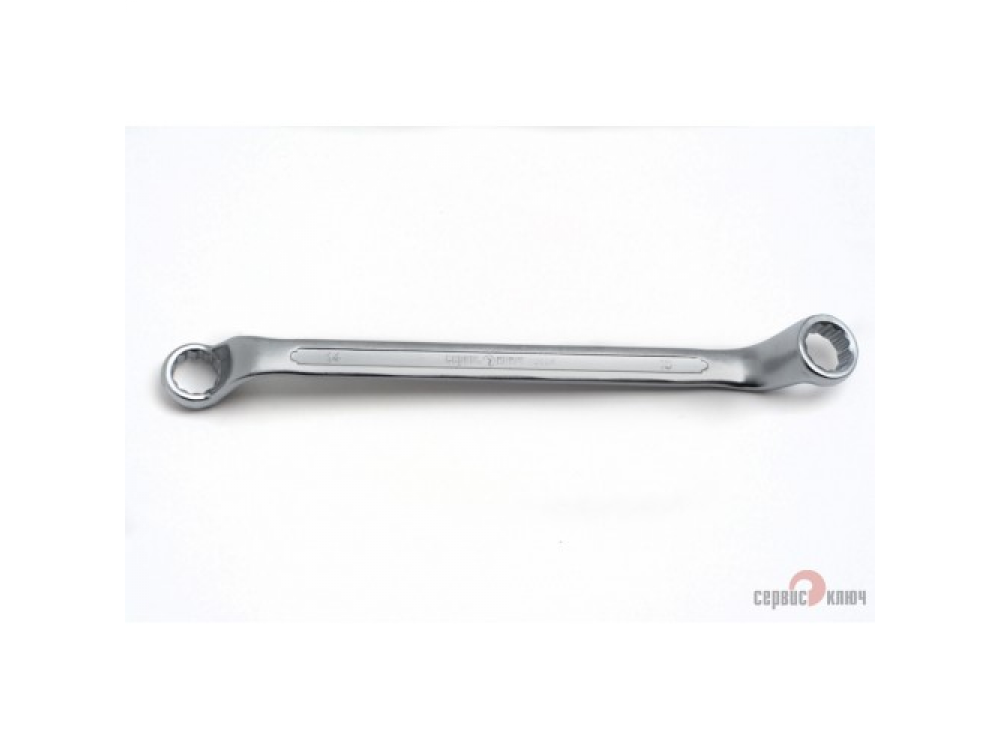 Двусторонний накидной ключ со смещением. Имеет на обоих концах 12-гранные накидные профили. Накидной профиль со смещением предоставляет более широкие возможности при работе в ограниченном пространстве. Изготовлен из высококачественной хромованадиевой (Crv) стали методом холодного штампа, тверность 40-45 HRC.