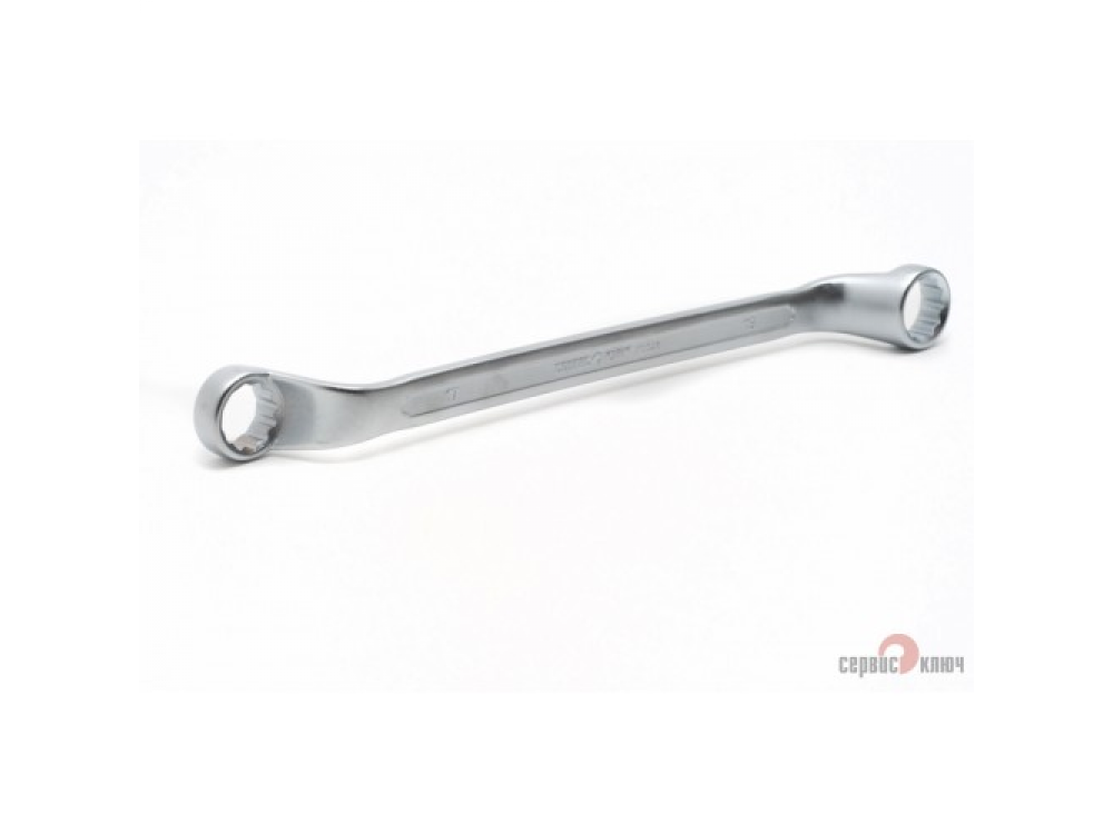 Двусторонний накидной ключ со смещением. Имеет на обоих концах 12-гранные накидные профили. Накидной профиль со смещением предоставляет более широкие возможности при работе в ограниченном пространстве. Изготовлен из высококачественной хромованадиевой (Crv) стали методом холодного штампа, тверность 40-45 HRC.