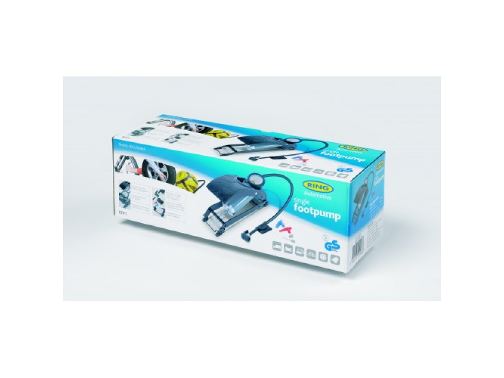 Ножной однокамерный насос Ring RFP1 представляет собой прочный ножной насос с противоскользящим протектором, который облегчает накачивание, а резиновые ножки обеспечивают устойчивость насоса во время использования. Гибкий воздушный шланг и система блокировки клапана обеспечивают надежное крепление ножного насоса к шине и предотвращают выход воздуха. Аналоговый манометр показывает давление в PSI и BAR. Поставляется с адаптерами для велосипедных шин, мячей и других надувных предметов. В комплекте с адаптером есть чемодан для хранения.