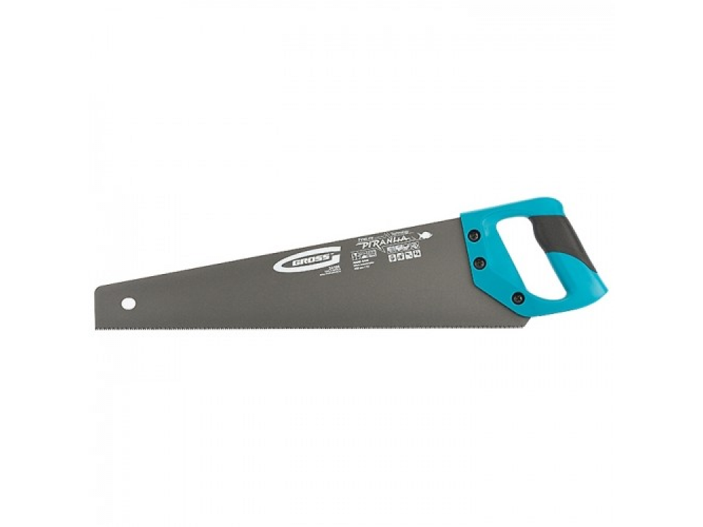 Ножовка "PIRANHA" торговой марки GROSS предназначена для столярных работ с различными породами древесины и древесными композитными материалами: ламинатом, ДСП, ДВП, МДФ, а также с синтетическими материалами: пенополистиролом, полиуретаном и пр. Полотно ножовки длиной 450 мм изготовлено из японской стали SK-5. Поверхность полотна обработана тефлоновым покрытием, которое:• защищает металл от коррозии;• повышает срок службы;• увеличивает скорость пиления за счет повышенного эффекта скольжения.Зубья ножовки имеют трехгранную заточку, что позволяет работать максимально качественно и быстро. Двухкомпонентная рукоятка ножовки изготовлена из ударопрочного пластика, а эргономичная форма делает ее комфортной для рук даже при интенсивном пилении.