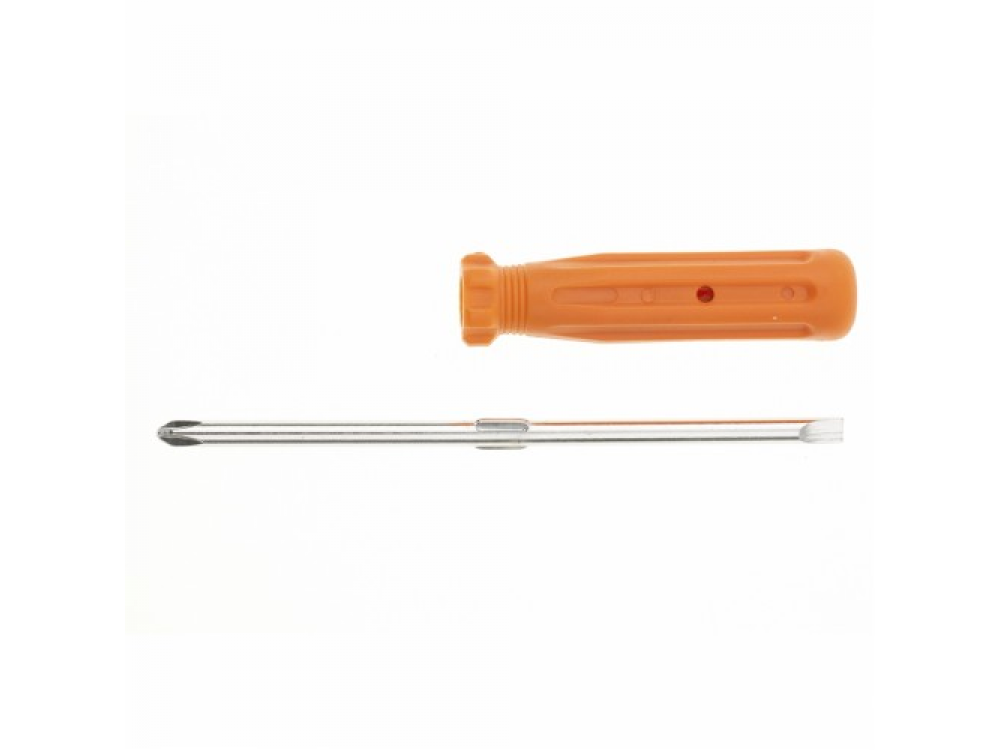 Отвертка предназначена для монтажа и демонтажа резьбовых соединений. Двухсторонний стержень отвертки имеет профили SL 6 мм и PH 2. Пластмассовая рукоятка имеет ребра.