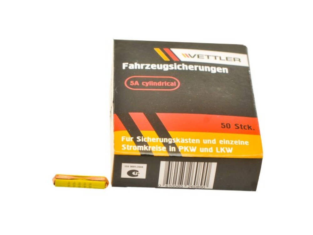 Главная / Автотовары / Электрооборудование / Ремонт электрики / Предохранители / Предохранитель 5А цилиндрический VETTLER