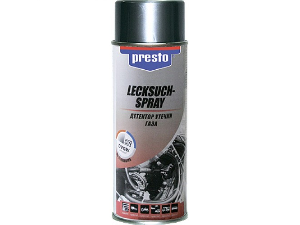 PRESTO Детектор утечки газа предназначен для выявления утечки в системах газоснабжения, трубопроводных линиях и воздушных системах. Не воспламеняется после нанесения. Содержит антикоррозийные ингибиторы и низкоконцентрированную щелочь. Слегка пенящийся.