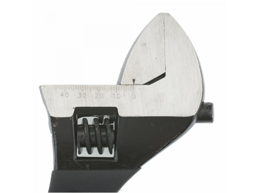 Ключ разводной изготовлен из углеродистой стали и подвергнут селективной закалке. Для разведения губок на точно заданное расстояние на неподвижной губке нанесена градуировка, а на подвижной – точечная риска. Встроенный в тело ключа червячно-винтовой механизм защищен от коррозии. Рожковый разводной ключ предназначен для монтажа и демонтажа резьбовых соединений с широким диапазоном размеров крепежа.