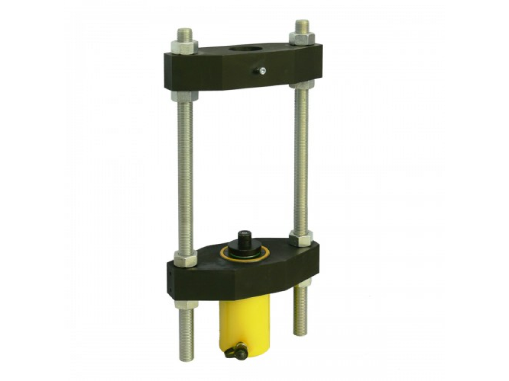 Набор приспособлений, который используется для демонтажа и монтажа шкворней грузовых автомобилей, соединяющей поворотную цапфу с балкой переднего моста без демонтажа передней подвески автомобиля. Приспособление оснащено гидравлическим цилиндром рабочим усилием 50 тонн. Для работы со съемником в комплекте поставляется ручной гидравлический насос. #SERVICES# Технические характеристики: - Рабочее усилие - 50 т - Ход штока - 150 мм - Диаметр отверстия суппорта - 80 мм - Длинна шпилек 800 мм - Ширина рамы - 380 мм - Объем масла цилиндра - 1147 см? Сравнительная таблица Наименование Выпрессовщик шкворней 50 тонн ODA-D1339 #OFFER_51161_ALL# Выпрессовщик шкворней 50 тонн ODA-E1339 #OFFER_56903_ALL# Выпрессовщик шкворней 100 тонн ODA-C1339 #OFFER_48590_ALL# Вес 80 100 150 Усилие, Тон 50 50 100 Расстояние между установочными шпильками 260 260 260 Рабочее пространство (высота х ширина) 540 x 260 540 x 260 540 х 260 Максимальный диаметр шкворня 60 60 60 Ход штока (влияет на скорость работы) 150 150 150 Кол-во колес телеги нет 4 поворотных 4 поворотных Угол поворота вокруг оси бабки нет 360 360 Кол-во пуансонов 4 4 9 Тип насоса для цилиндра Опция Опция Пневмо Возврат штока Пружина Пружина Пружина Комплектация: - Выпрессовщик: 1 шт - Пуансоны: 3 шт - Упорная втулка: 1 шт - Адаптер 33/50: 1 шт - Ключ для гаек ПР - Гидравлический насос - опция