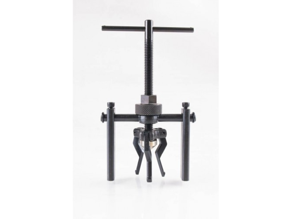Съемник внутренних подшипников Приспособление для извлечения подшипников с захватом за внутреннюю обойму. Предназначен для использования при снятии подшипников с посадкой по наружнему кольцу в корпус агрегата. При изготовлении губок захватов используется высокопрочный сплав, что позволяет предохранить съемник подшипников от деформации.