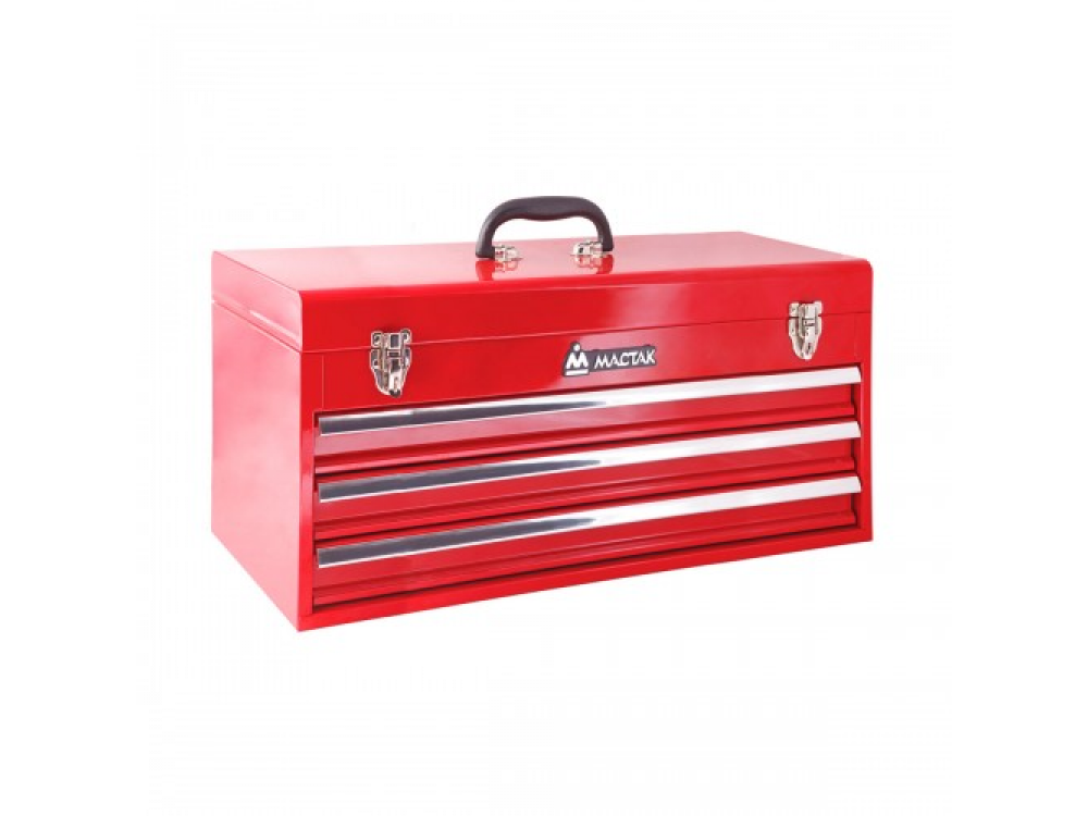 Ящик инструментальный, 3 полки, красный 511-03530R служит для организации рабочего места в любом производственном помещении, на станциях технического обслуживания или авторемонтных мастерских, хранение инструмента, мобильность. Технические характеристики: - Тип ящика: 1 верхний отсек, 3 выдвижные полки - Размеры отсека: 510 х 200 х 90 мм - Размеры выдвижных полок: 380 х 195 х 47 мм - Замок верхнего отсека: 2 шт., металлический, тип фиксатора CLIP-LOCK - Материал: сталь - Покрытие: порошковая окраска - Цвет: красный - Габариты: 530 х 220 х 285 мм - Вес: 8,7 кг