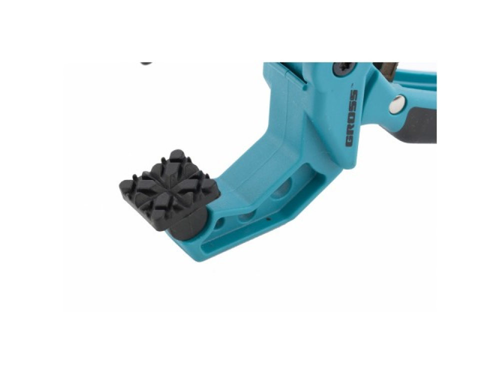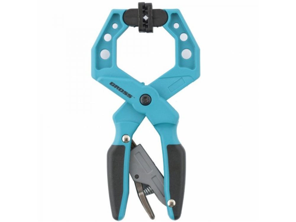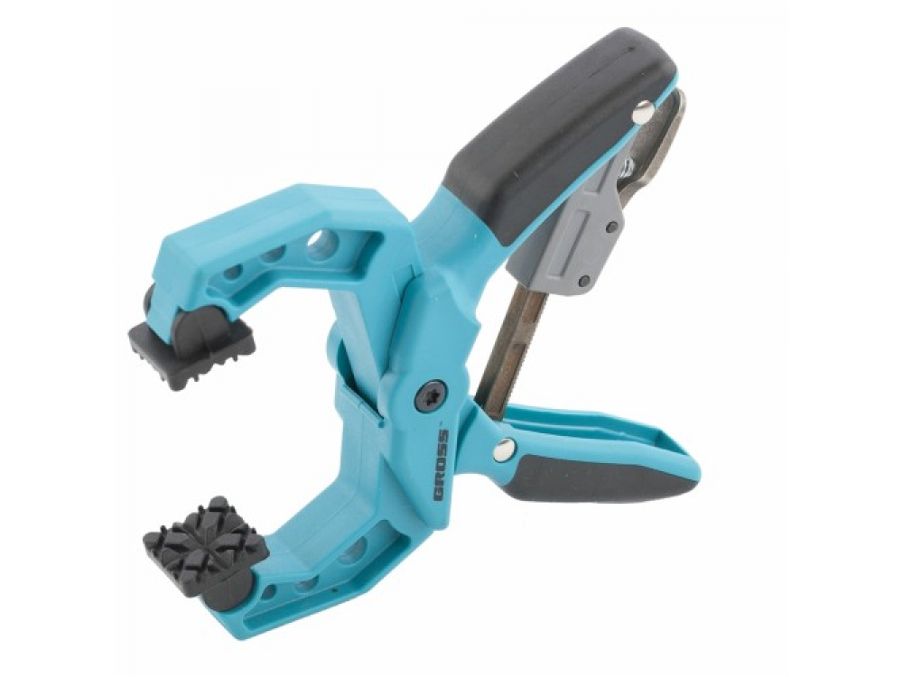 Струбцина клещеобразная торговой марки GROSS предназначена для фиксации и удержания деталей и заготовок различных конструкций диаметром до 38 мм. Прижимные накладки на шарнирах позволяют размещать деталь под разными углами. Храповой механизм обеспечивает надежную и жесткую фиксацию заготовок/деталей в отличие от механизма пружинных струбцин прищепочного типа. При нажатии на курок происходит мгновенное раскрытие струбцины. Двухкомпонентная рукоятка позволяет комфортно удерживать инструмент в руке при эксплуатации.