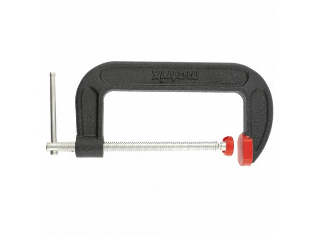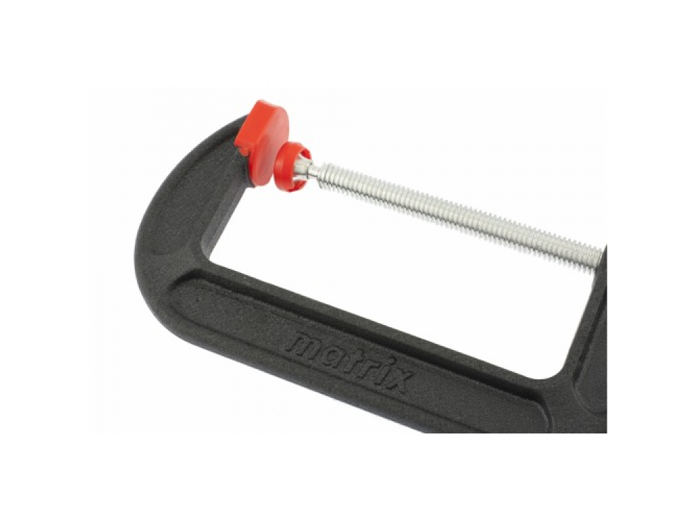 Корпус G-образной струбцины покрыт порошковой краской, стойкой к механическим повреждениям и надежно защищающей струбцину от коррозии. Губки снабжены накладками, предотвращающими повреждения обрабатываемых предметов. Винт струбцины с крупной червячной резьбой и воротком надежно фиксирует обрабатываемые детали.