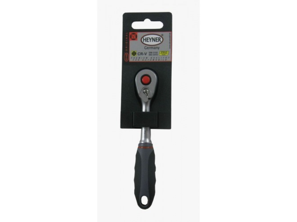 Трещетка, ?", 140 мм. Насадки разблокируются нажатием кнопки . Эргономичная рукоятка. Хром-ванадиевая качественная сталь.