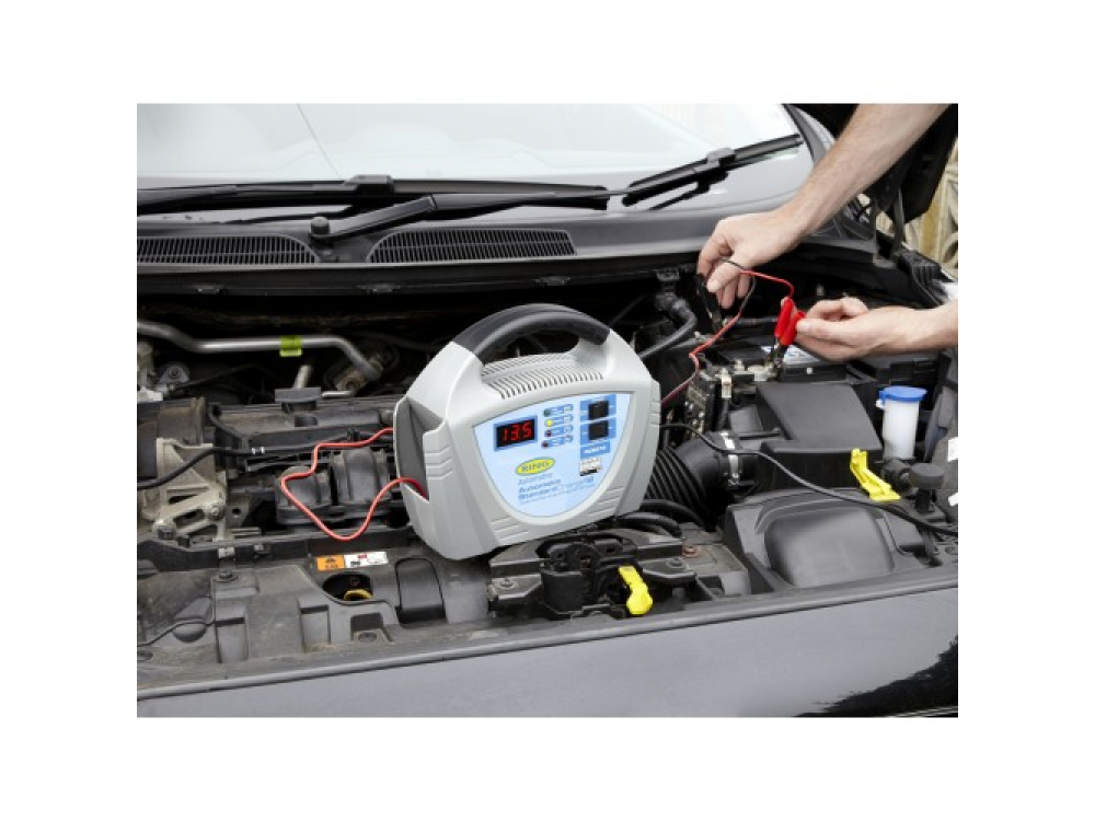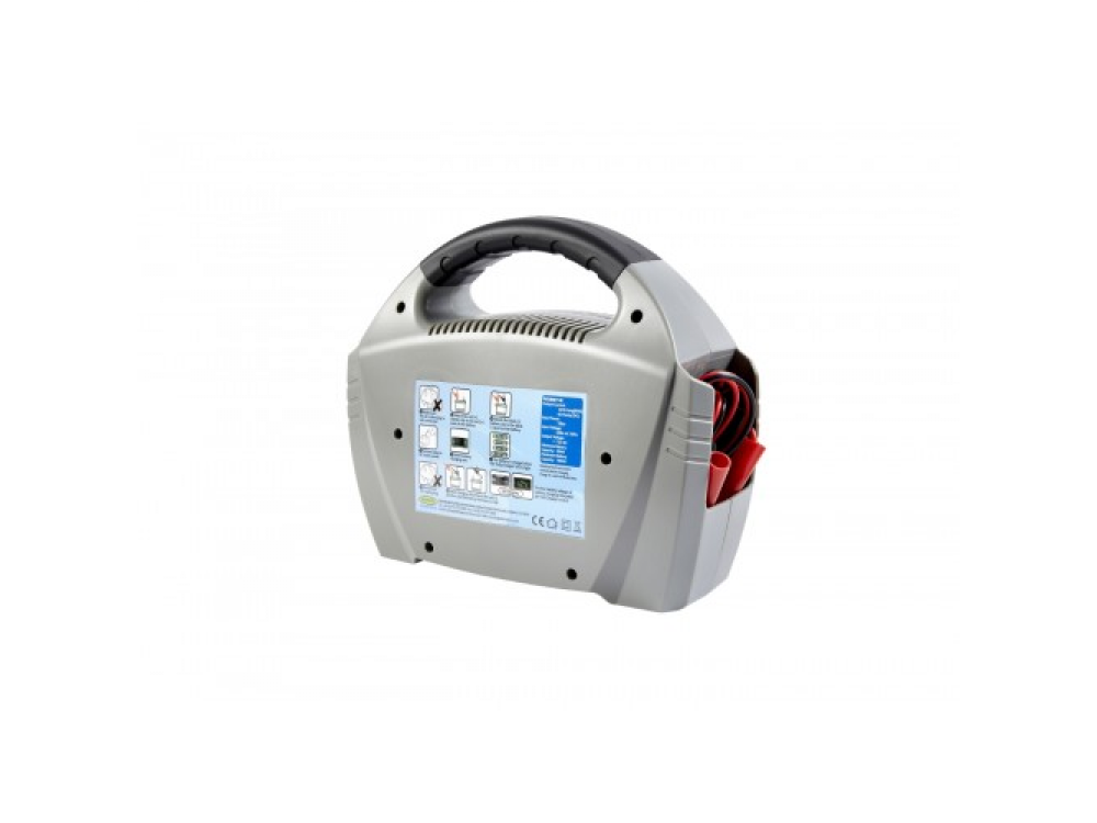 12А полностью автоматическое зарядное устройство для 12В автомобилей до 3 л. Защищает от перезарядки: обнаруживает, когда батарея полностью заряжена, и автоматически переключается на более низкую скорость зарядки. Светодиодный экран отображает приложенное напряжение батареи и уровень заряда, а также включает светодиод, показывающий обратную полярность. Быстрая и медленная скорость зарядки. Включает отсеки для хранения кабелей и зажимов аккумулятора, а также резиновую ручку для удобного захвата. Идеально подходит для стандартной зарядки аккумулятора.